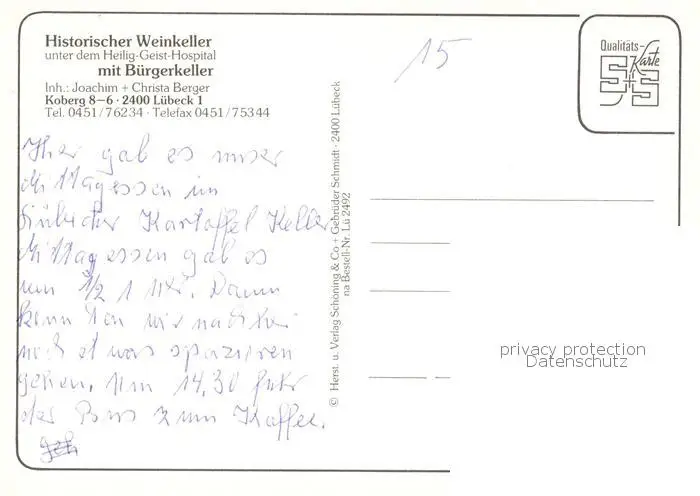 73845069 Luebeck Historischer Weinkeller unter dem Heiligen Geist Hospital Gastraeume Luebeck postalisch nicht gelaufen nach 1965 Erhaltung siehe scans [WerneD78] [WernPID7 ]