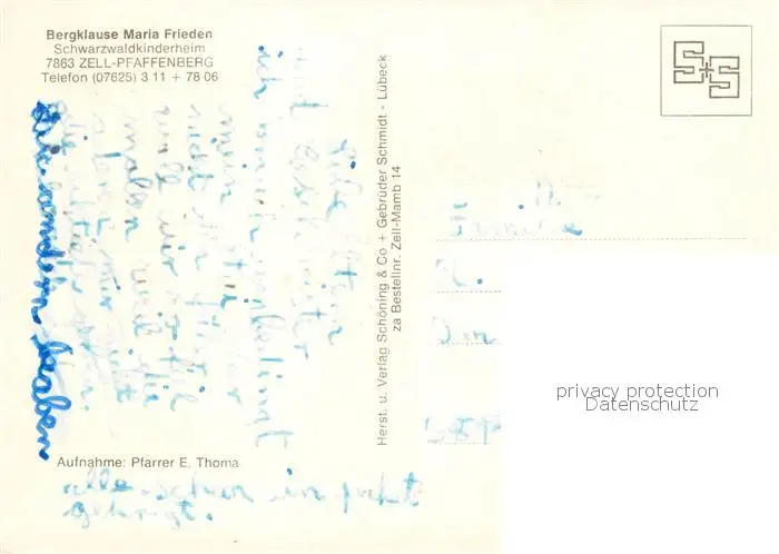 73845142 Pfaffenberg_Zell_im_Wiesental Bergklause Maria Frieden postalisch nicht gelaufen nach 1965 Erhaltung siehe scans [WerneD78] [WernPID7 ]