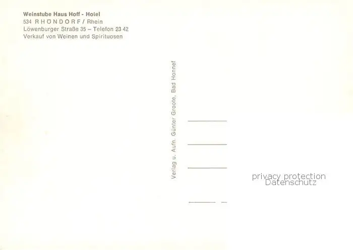 73845157 Rhoendorf Weinstube Haus Hoff Hotel Rhoendorf postalisch nicht gelaufen nach 1965 Erhaltung siehe scans [WerneD78] [WernPID7 ]