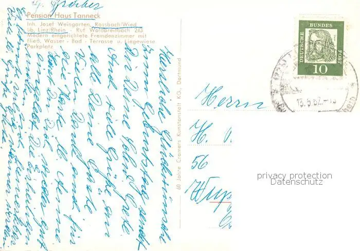 73845173 Linz_Rhein Pension Haus Tanneck Linz_Rhein postalisch gelaufen 1962 Erhaltung siehe scans [WerneD78] [WernPID7 ]