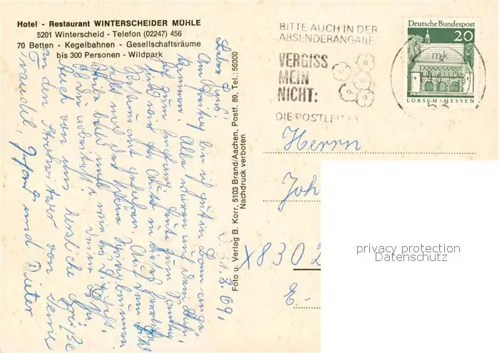 73845202 Winterscheid_Siegkreis Hotel Restaurant Winterscheider Muehle Winterscheid Siegkreis postalisch gelaufen 1969 Erhaltung siehe scans [WerneD78] [WernPID7 ]