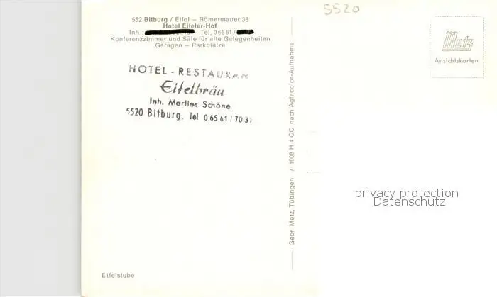 73845215 Bitburg Hotel Eifeler Hof Gaststube Bitburg postalisch nicht gelaufen nach 1965 Erhaltung siehe scans [WerneD78] [WernPID7 ]