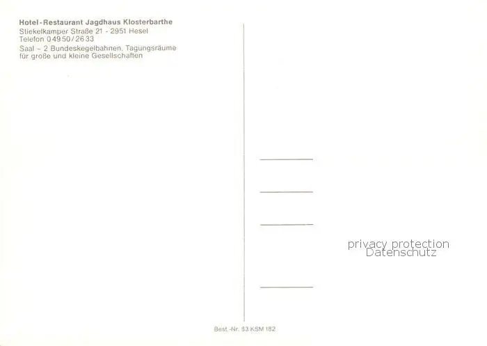 73845220 Hesel_Ostfriesland Hotel Restaurant Jagdhaus Klosterbarthe Gaststube Zimmer Hesel_Ostfriesland postalisch nicht gelaufen nach 1965 Erhaltung siehe scans [WerneD78] [WernPID7 ]