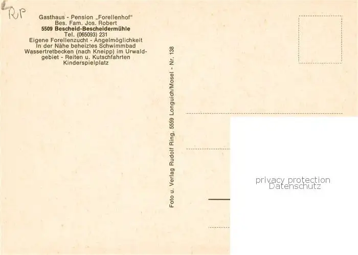 73845223 Bescheid_Hermeskeil Gasthaus Pension Forellenhof Fliegeraufnahme Bescheid Hermeskeil postalisch nicht gelaufen nach 1965 Erhaltung siehe scans [WerneD78] [WernPID7 ]