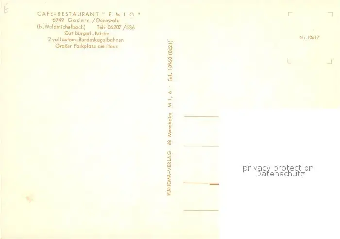 73845230 Gadern Cafe Restaurant Emig Gastraeume Gadern postalisch nicht gelaufen nach 1965 Erhaltung siehe scans [WerneD78] [WernPID7 ]