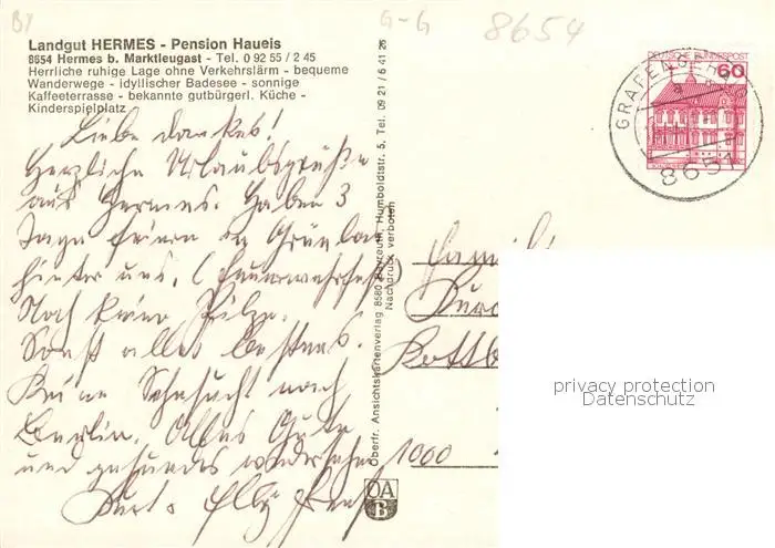 73845259 Hermes_Marktleugast Gasthof Pension Hermes im Frankenwald Teich Wegekreuz Hermes_Marktleugast postalisch gelaufen nach 1965 Erhaltung siehe scans [WerneD78] [WernPID7 ]