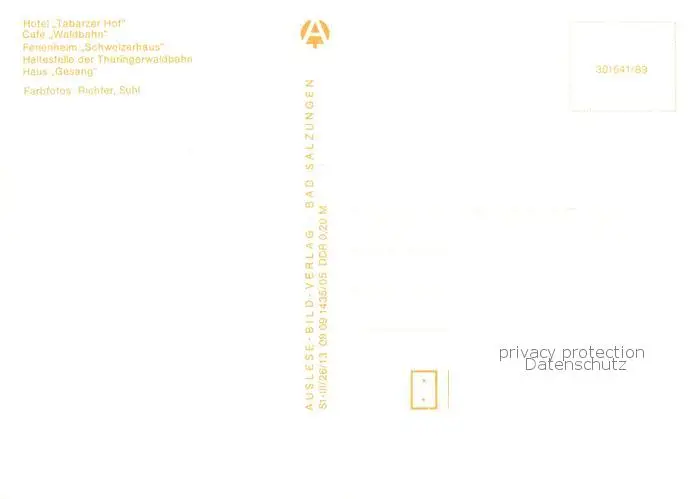 73845265 Tabarz_Bad_Tabarz Hotel Tabarzer Hof Cafe Waldbahn Ferienheim Schweizerhaus Haltestelle der Thueringerwaldbahn Haus Gesang postalisch nicht gelaufen nach 1965 Erhaltung siehe scans [FriedD77] [Frierer ]