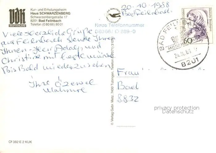 73845293 Bad_Feilnbach VdK Haus Schwarzenberg Hallenbad Bad_Feilnbach postalisch gelaufen 1988 Erhaltung siehe scans [FriedD77] [Frierer ]