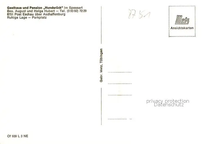 73845322 Eschau_Unterfranken Gasthaus Pension Hundsrueck Eschau Unterfranken postalisch nicht gelaufen nach 1965 Erhaltung siehe scans [FriedD77] [Frierer ]
