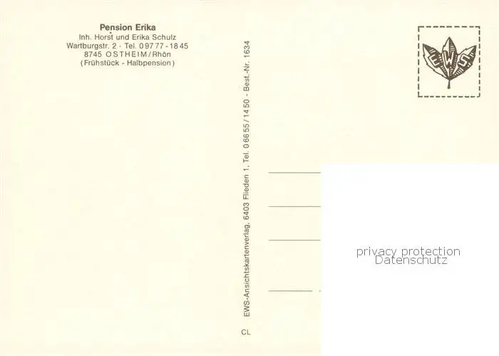 73845323 Ostheim__Rhoen Pension Erika Gaststube Zimmer Schloss postalisch nicht gelaufen nach 1965 Erhaltung siehe scans [FriedD77] [Frierer ]