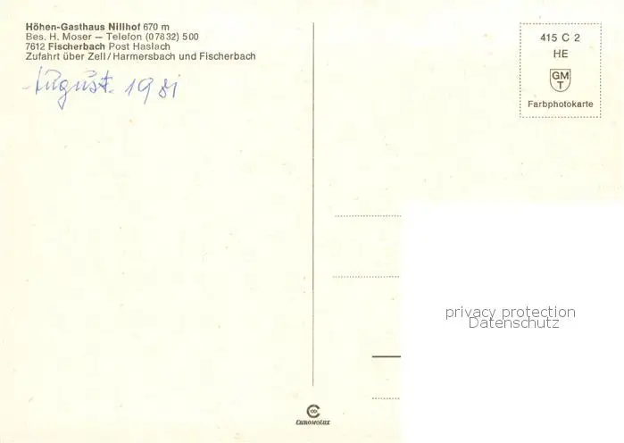 73845361 Fischerbach Hoehen Gasthaus Nillhof Fischerbach postalisch gelaufen 1981 Erhaltung siehe scans [FriedD77] [Frierer ]