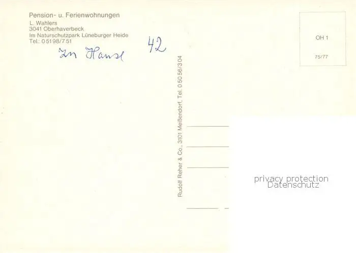 73846009 Oberhaverbeck_Soltau Pension und Ferienwohnungen Wahlers Oberhaverbeck Soltau postalisch nicht gelaufen nach 1965 Erhaltung siehe scans [FriedD77] [Frierer ]