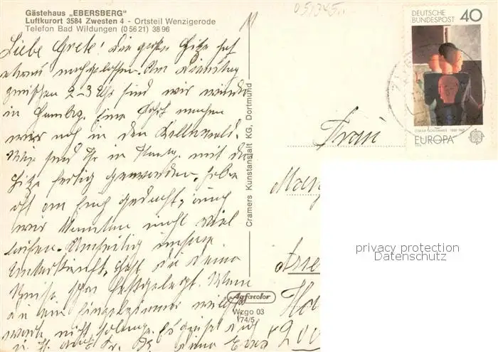 73846015 Wenzigerode_Bad_Zwesten Gaestehaus Ebersberg postalisch gelaufen 1976 Erhaltung siehe scans [FriedD77] [Frierer ]