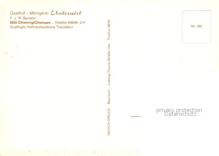 73846019 Chieming_Chiemsee Gasthof Metzgerei Unterwirt Gaststube Terrasse Chieming Chiemsee postalisch nicht gelaufen nach 1965 Erhaltung siehe scans [FriedD77] [Frierer ]