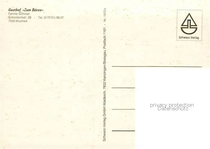 73846041 Bruchsal Schloss Bruchsal Speiselokal Gasthof zum Baeren Bruchsal postalisch nicht gelaufen nach 1965 Erhaltung siehe scans [FriedD77] [Frierer ]