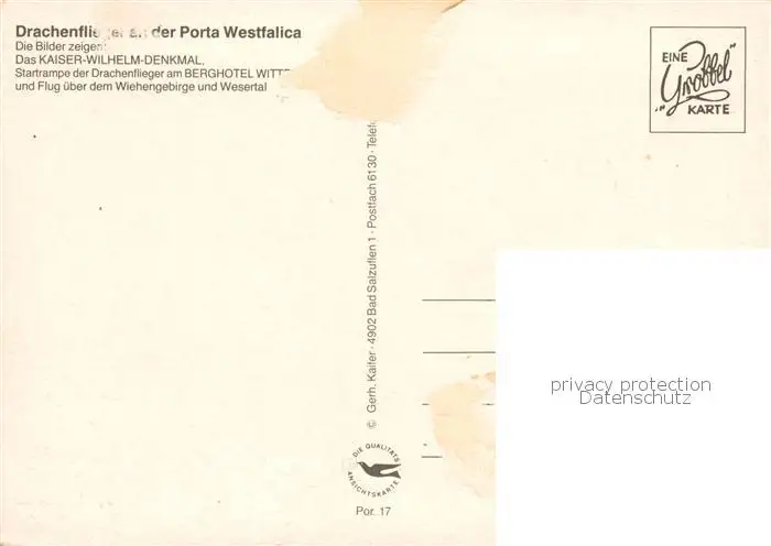 73846070 Porta_Westfalica Kaiser Wilhelm Denkmal Kirche Drachenflieger an der Porta Westfalica Berghotel Porta_Westfalica postalisch nicht gelaufen nach 1965 Erhaltung siehe scans [WerneD78] [WernPID7 ]