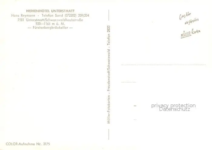 73846085 Unterstmatt Hoehenhotel Unterstmatt Fuerstenbergbraeukeller Unterstmatt postalisch nicht gelaufen nach 1965 Erhaltung siehe scans [WerneD78] [WernPID7 ]