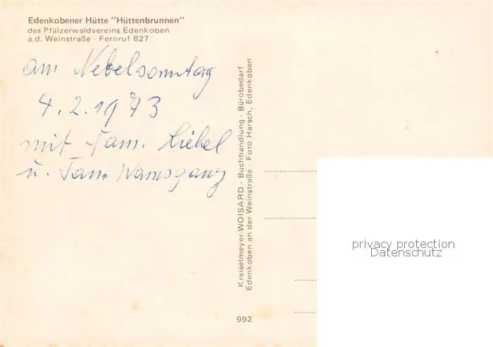 73846103 Edenkoben Edenkobener Huette Huettenbrunnen Edenkoben postalisch nicht gelaufen nach 1965 Erhaltung siehe scans [WerneD78] [WernPID7 ]