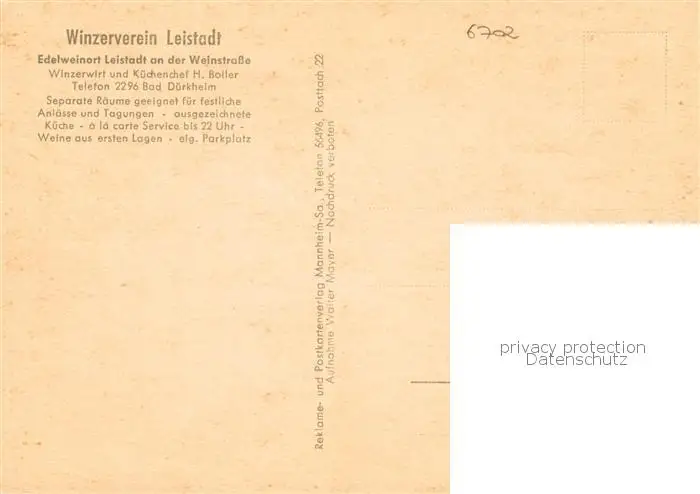 73846202 Leistadt Winzerverein Leistadt Gasthaus Leistadt postalisch nicht gelaufen nach 1965 Erhaltung siehe scans [WerneD78] [WernPID7 ]