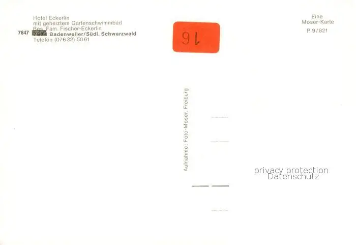 73846562 Badenweiler Hotel Eckerlin Terrasse Badenweiler postalisch nicht gelaufen nach 1965 Erhaltung siehe scans [WerneD78] [WernPID7 ]