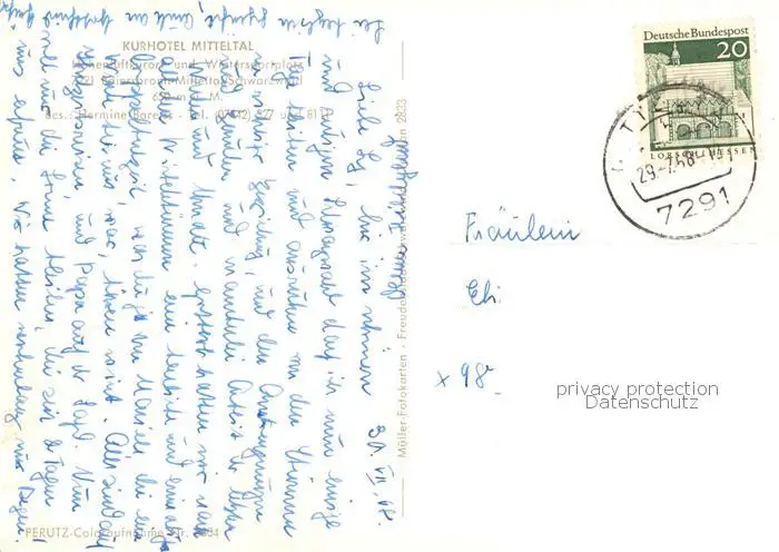 73846567 Baiersbronn_Schwarzwald Kurhotel Mitteltal Baiersbronn Schwarzwald postalisch gelaufen 1968 Erhaltung siehe scans [WerneD78] [WernPID7 ]