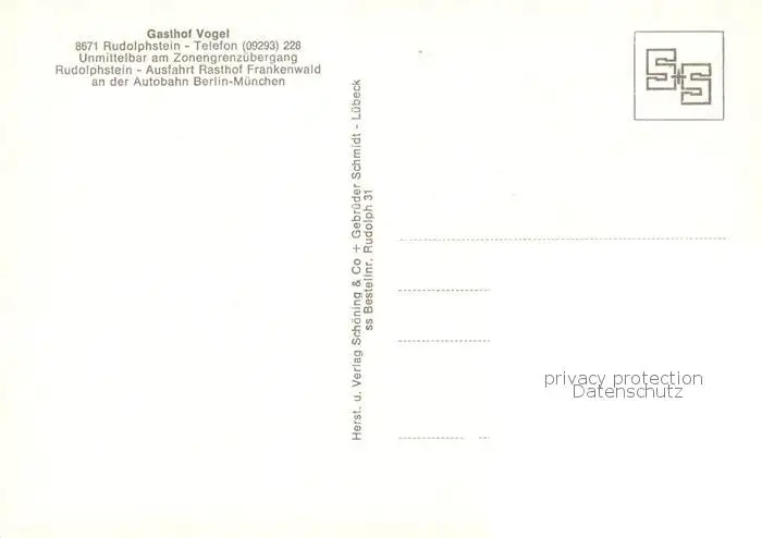 73846596 Rudolphstein Frankenstube Saaleblick Gasthof Vogel Bar Gasthof Rudolphstein postalisch nicht gelaufen nach 1965 Erhaltung siehe scans [WerneD78] [WernPID7 ]