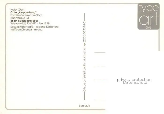 73846602 Beilstein_Mosel Hotel Cafe Klapperburg Gastraeume Kaffeemuehle Beilstein_Mosel postalisch nicht gelaufen nach 1965 Erhaltung siehe scans [WerneD78] [WernPID7 ]