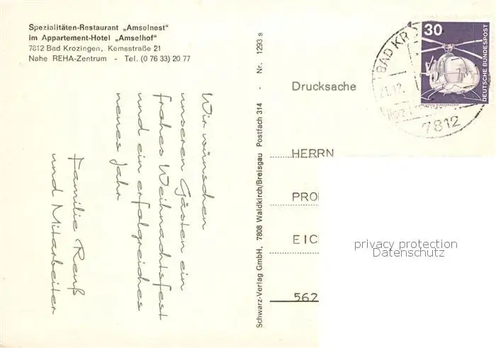 73846634 Bad_Krozingen Restaurant Amselnest im Appartement Hotel Amselhof Bad_Krozingen postalisch gelaufen nach 1965 Erhaltung siehe scans [WerneD78] [WernPID7 ]