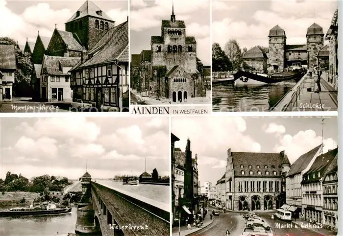 73846775 Minden__Westfalen_Weser Martini Kirche Dom Schleuse Weserkreuz Markt und Rathaus postalisch nicht gelaufen 1921-1965 Erhaltung siehe scans [FriedD77] [Frierer ]