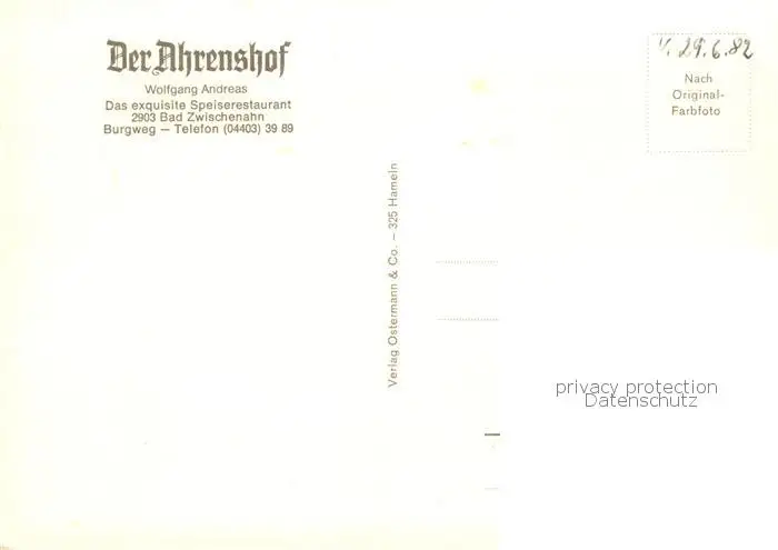 73847521 Bad_Zwischenahn Der Ahrenshof Restaurant Bad_Zwischenahn postalisch nicht gelaufen 1982 Erhaltung siehe scans [FriedD77] [Frierer ]