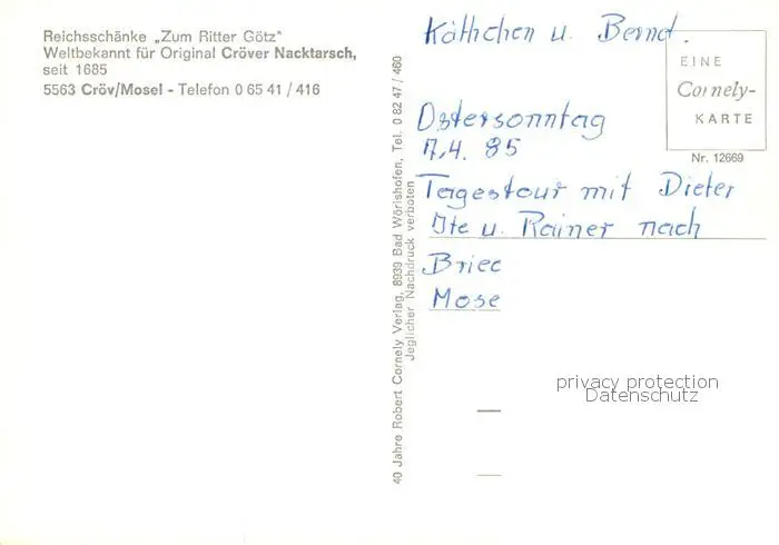 73847542 Croev_Kroev_Croev_Mosel Reichsschaenke Zum Ritter Goetz Gastraum postalisch nicht gelaufen 1985 Erhaltung siehe scans [FriedD77] [Frierer ]