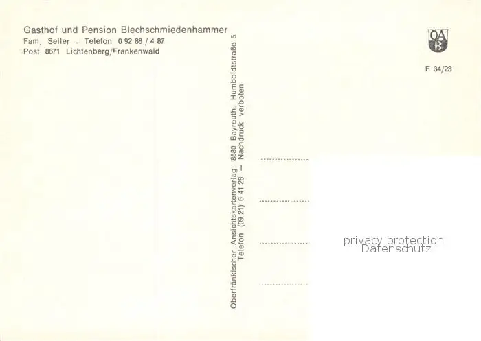 73847559 Lichtenberg_Oberfranken Gasthof Pension Blechschmiedenhammer im Frankenwald Lichtenberg Oberfranken postalisch nicht gelaufen nach 1965 Erhaltung siehe scans [FriedD77] [Frierer ]