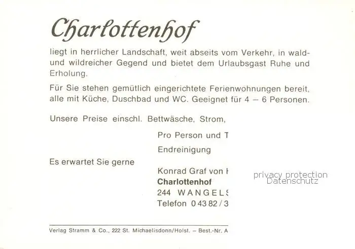 73847818 Wangels Charlottenhof Wangels postalisch nicht gelaufen nach 1965 Werbekarte (keine Postkarte) Erhaltung siehe scans [WerneD78] Werbekarte (keine Postkarte)[WernPID7 ]