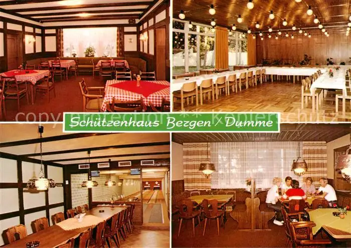 AK / Ansichtskarte 73847933 Bergen_Dumme Schuetzenhaus Bergen Gastraeume Festsaal Kegelbahn Bergen Dumme