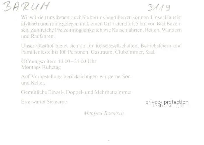 73847934 Barum_Bad_Bevensen Gasthof Zum alten Bauernhaus Gastraeume Zimmer Barum_Bad_Bevensen postalisch nicht gelaufen nach 1965 Erhaltung siehe scans [FriedD77] [Frierer ]