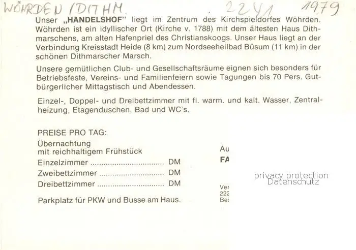 73848199 Woehrden_Dithmarschen Hotel Handelshof Bar Gastraeume Zimmer Woehrden Dithmarschen postalisch nicht gelaufen 1979 Erhaltung siehe scans [FriedD77] [Frierer ]