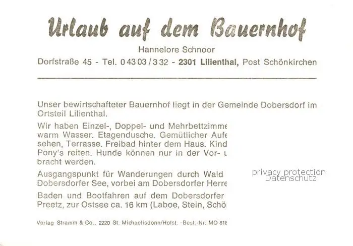 73848237 Lilienthal_Dobersdorf Urlaub auf dem Bauernhof Zimmer Terrasse Gaststube Lilienthal Dobersdorf postalisch nicht gelaufen nach 1965 Erhaltung siehe scans [FriedD77] [Frierer ]