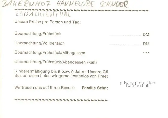 73848238 Lilienthal_Dobersdorf Bauernhof Hannelore Schnoor Strand Reiter Schwimmbad Lilienthal Dobersdorf postalisch nicht gelaufen nach 1965 Werbekarte (keine Postkarte) Erhaltung siehe scans [FriedD77] Werbekarte (keine Postkarte)[Frierer ]