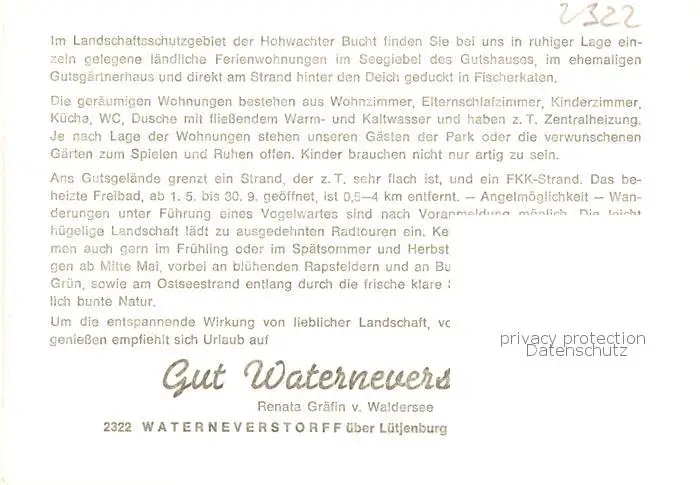 73848245 Waterneverstorf Ferienwohnungen im Seegiebel des Gutshauses Teilansichten Waterneverstorf postalisch nicht gelaufen nach 1965 Werbekarte (keine Postkarte) Erhaltung siehe scans [FriedD77] Werbekarte (keine Postkarte)[Frierer ]