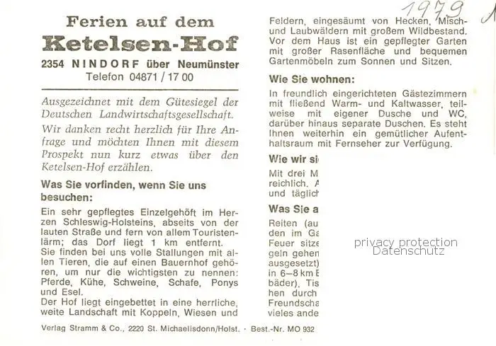 73848254 Nindorf_Hohenwestedt Ferien auf dem Ketelsen Hof postalisch nicht gelaufen 1979 Werbekarte (keine Postkarte) Erhaltung siehe scans [FriedD77] Werbekarte (keine Postkarte)[Frierer ]