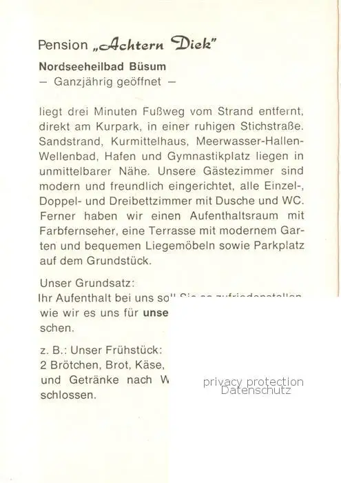 73848257 Buesum_Nordseebad Pension Achtern Diek Gaststube Buesum_Nordseebad postalisch nicht gelaufen nach 1965 Werbekarte (keine Postkarte) Erhaltung siehe scans [FriedD77] Werbekarte (keine Postkarte)[Frierer ]