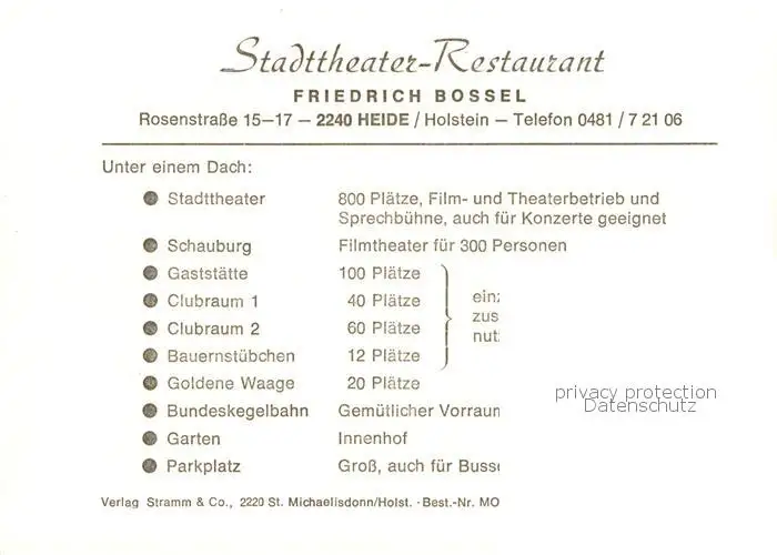 73848469 Heide_Holstein Stadttheater Restaurant Festsaal Heide_Holstein postalisch nicht gelaufen nach 1965 Werbekarte (keine Postkarte) Erhaltung siehe scans [FriedD77] Werbekarte (keine Postkarte)[Frierer ]