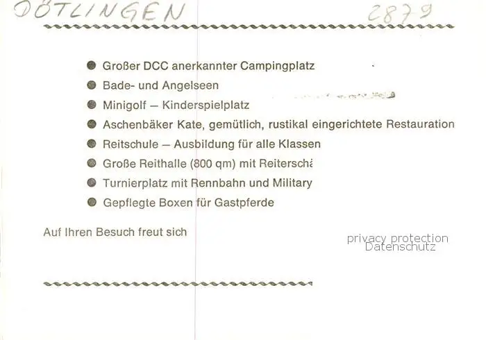 73848472 Doetlingen Campingplatz Gaststaette Aschenbaeker Kate Reithalle Reitschule Doetlingen postalisch nicht gelaufen nach 1965 Werbekarte (keine Postkarte) Erhaltung siehe scans [FriedD77] Werbekarte (keine Postkarte)[Frierer ]
