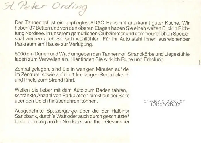 73848489 St_Peter-Ording Kurpension Tannenhof Gastraum Terrasse Fremdenzimmer St_Peter-Ording postalisch nicht gelaufen nach 1965 Werbekarte (keine Postkarte) Erhaltung siehe scans [FriedD77] Werbekarte (keine Postkarte)[Frierer ]