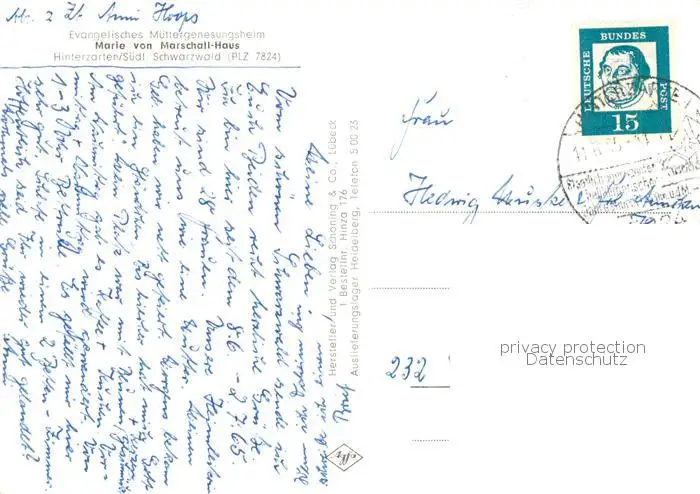 73849135 Hinterzarten Marie von Marschall Haus Hinterzarten postalisch gelaufen 1965 Erhaltung siehe scans [WerneD78] [WernPID7 ]