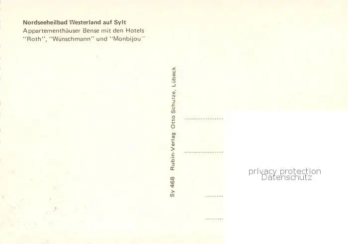 73849245 Westerland_Sylt Appartementhaeuser Bense mit den Hotels Roth Wuenschmann und Monbijou Westerland_Sylt postalisch nicht gelaufen nach 1965 Erhaltung siehe scans [WerneD78] [WernPID7 ]