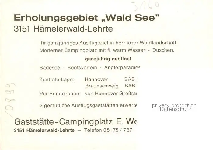 73849336 Haemelerwald Erholungsgebiet Waldsee Restaurant Gaststaette Campingplatz Weigel Haemelerwald postalisch nicht gelaufen nach 1965 Erhaltung siehe scans [FriedD77] [Frierer ]