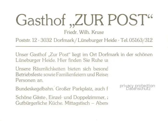 73849446 Dorfmark_Bad_Fallingbostel Gasthof Zur Post postalisch nicht gelaufen nach 1965 Werbekarte (keine Postkarte) Erhaltung siehe scans [FriedD77] Werbekarte (keine Postkarte)[Frierer ]