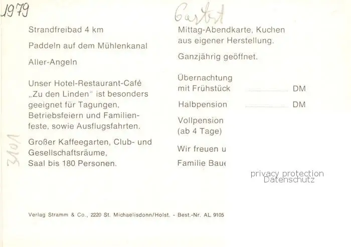73849459 Wienhausen Hotel Restaurant Café Zu den Linden Wienhausen postalisch nicht gelaufen nach 1965 Werbekarte (keine Postkarte) Erhaltung siehe scans [FriedD77] Werbekarte (keine Postkarte)[Frierer ]
