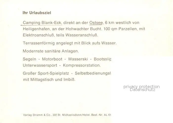 73849492 Neuteschendorf Campingplatz Blank-Eck an der Ostsee Neuteschendorf postalisch nicht gelaufen nach 1965 Werbekarte (keine Postkarte) Erhaltung siehe scans [FriedD77] Werbekarte (keine Postkarte)[Frierer ]